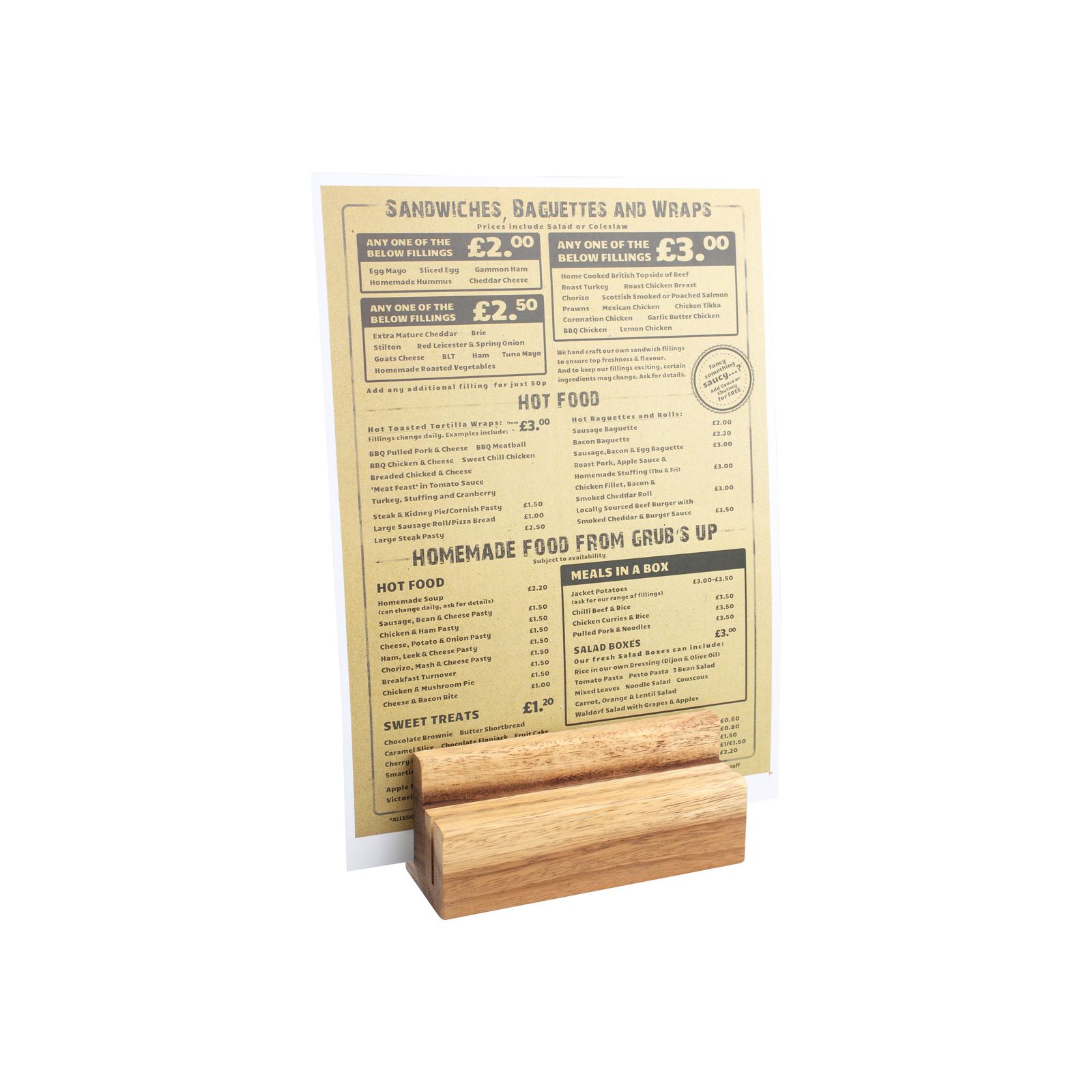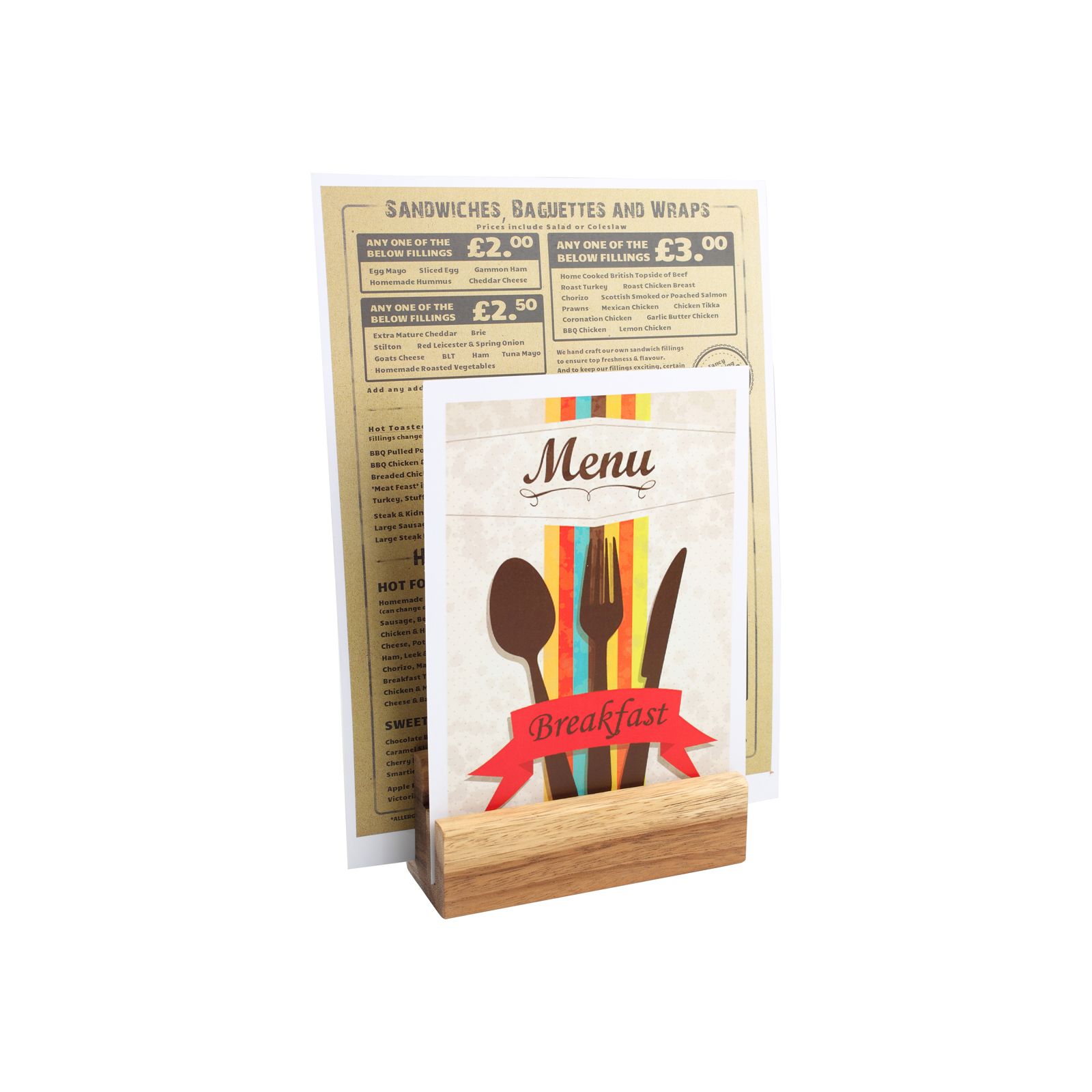 Perfect for table top display, just one of our many stylish and practical menu/table display signs.