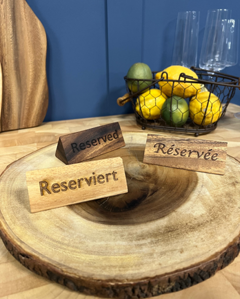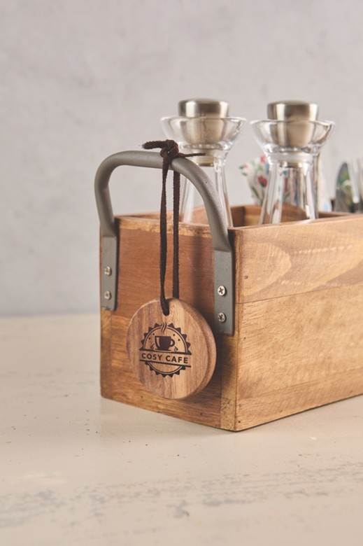 An engraved logo on a serving board, menu holder or table caddy adds a subtle but effective branded touch without overpowering the table setting. It creates a cohesive look across your venue and reinforces your identity in a way that feels considered and professional.